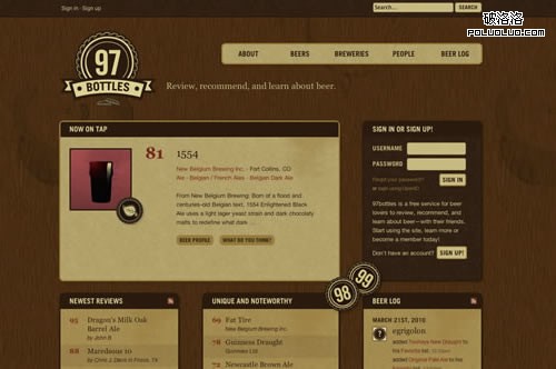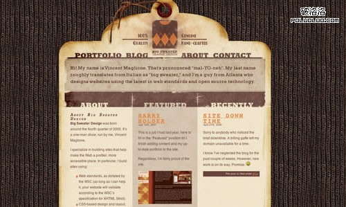 網頁制作poluoluo文章簡介:棕色會很自然的讓人聯想到親切、自然和懷舊,會給人某種歸屬感或者溫馨的感覺,善用它可以設計出非常有feel的網站。讓我們欣賞更多的使用棕色的網站設計吧,希望能夠給你提供點兒靈感。