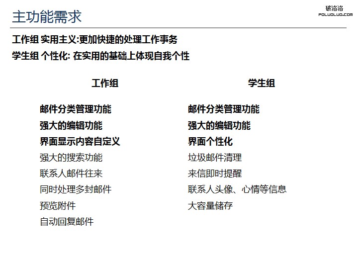 2:焦點小組主要目的是深入了解學生,工作兩組不同的主要用戶群對郵箱的需求,探索新版本的設計思路.
