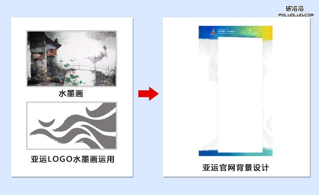 網頁制作poluoluo文章簡介:新版設計中的一個核心就是頁面的特色,不僅僅是中國的特色,還有亞運的特色。而中國的水墨在奧運中的成功運用,也讓這一元素更加的具有了國際化特性。設計之初,底部背景是運用了具有運動特色的大面積水墨效果,之後才修改成了經過水墨化處理的亞運LOGO,這樣可以更加的