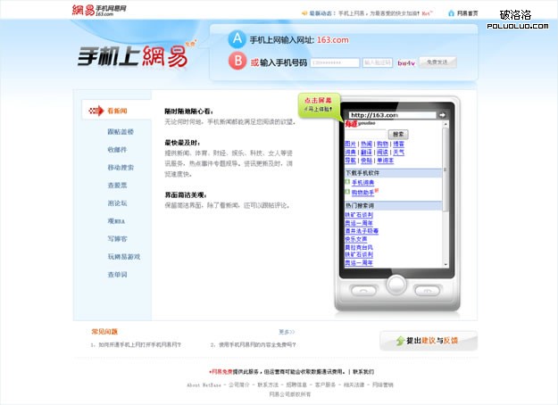 下面是最新的手機網易網改版頁面: