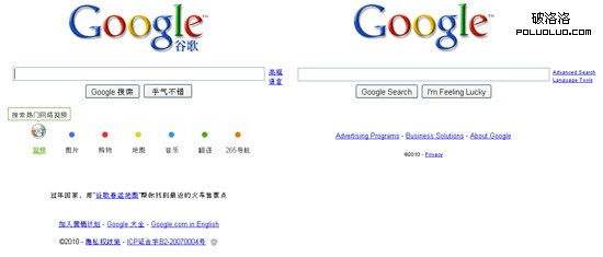 Google 以簡潔著稱,但比較一下 Google China 和 Google US 就能看多一些細微的差別: