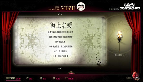 Shanghai Vive 是一個老上海化妝品品牌,現在被重新包裝上市成為高端日化用品,該站點大量使用 Flash 以展示優雅和高尚的生活。