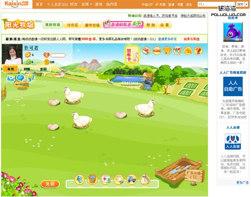 一個很好的例子就是開心網的偷菜功能,開心在導航以及用戶交互方面從 Facebook 借鑒了很多東西,但不同是,它允許你經營開心農場,建房子,種菜,並從你朋友那裡偷菜。有些玩家甚至用 Excel 表格記錄他的好友的收獲季節以便及時去偷,這個游戲和普通游戲沒有兩樣,但內嵌在一個社會網絡網站中,可以很更多人一起玩。偷菜在國內如此流行甚至驚動了文化部,迫於壓力,這個游戲現在改名摘菜菜,摘菜在中國文化中顯得不那麼刺耳,但玩家們仍喜歡那個更貼切的名字,偷菜。