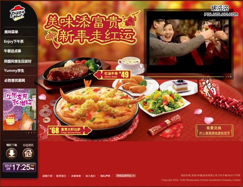 在講到文化差異時,Pizza Hut China 是我喜歡用到的一個例子,整站體現濃濃的中國味,從配色,到家庭主題。暖紅加黃是中國節慶的顏色,而家庭餐在中國很受重視。