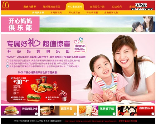 McDonalds China 網站也是,主導航中就包含歡樂家庭聚餐。
