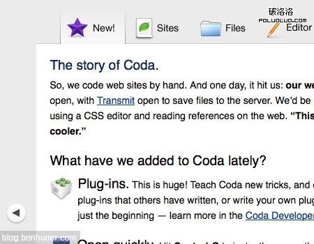 以下是另一個利用標簽卡緊湊地展示信息的實例。根據 Atebits的布局結構,介紹性內容的空間被擠壓,不太適合做成多區塊樣式。所以他們介紹內容的三大部分被組織到了標簽中,保持了布局的整潔有序。再一次地,當前標簽卡的背景與主內容區融合,不活動標簽卡則是較暗的灰色背景。你同樣也會發現標簽卡之間有著漂亮的分割線,使得每個標簽卡看起來都像是獨立的按鈕。
