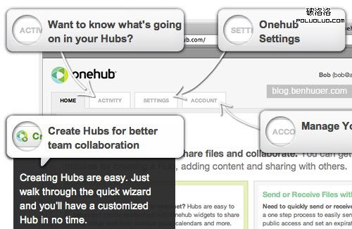 OneHub 則利用翻轉元素實現了另一種效果。這個頁面有點像地圖,在不同區域做出了標注。鼠標移到標注上時,會顯示該標注的額外信息。這種方法用在需要分區域詳細解釋的產品介紹頁上將有特效。