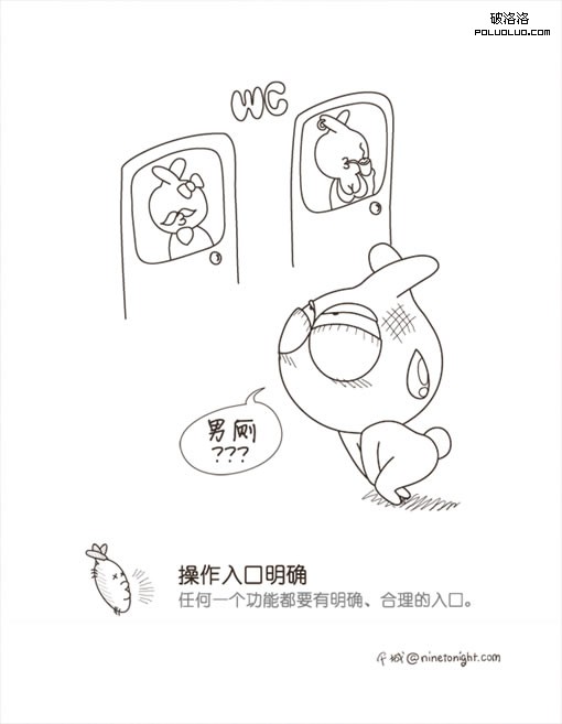 “操作入口明確”,就是指產品的任何一個功能都要有明確、合理的入口。“操作入口”,指的是產品內部不同模塊之間的轉接元素,例如在Web產品中,按鈕控件、輸入框、文字鏈等都屬於操作入口;“明確”指的是入口的視覺感是清晰的、可識別的;“合理”是指入口的出現是符合用戶操作邏輯的,適時的。