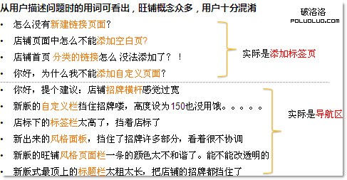 這意味著研究員要對產品周期有充分的了解和認識。在本例中,我們的抽樣樣本是,旺鋪升級後一周內(7天)用戶通過旺鋪裝修頁面“提意見”入口(圖3)提交的所有數據。