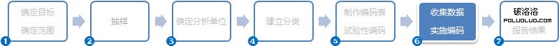 內容分析的基本流程如圖2所示。科研中,還有訓練編碼員(5、6環節間)、測量編碼員之間可信度(6、7環節間)的步驟。在企業環境中由於受到時間等調研成本制約,可選擇性執行這兩步。具體每一步的實施將在PART2中通過實例詳述。