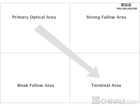 這就是當我們的眼睛從左上向右下方向掃描,左下區域是最不能引起關注的,並且我們的掃描會在右下區域停止.