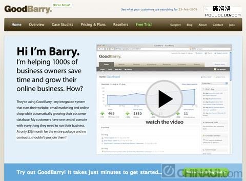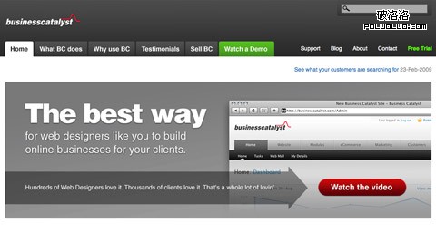 Business Catalyst用了一個箭頭圖片來引導人的視線移到”觀看視頻”的按鈕那