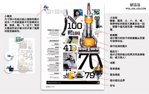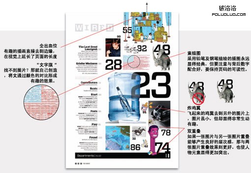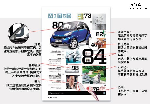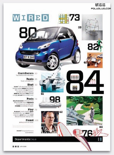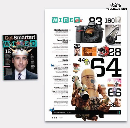 《連線》雜志的目錄設計就象一個百變玩具盒,他們使用了非常多的視覺技巧應用在各種元素上。