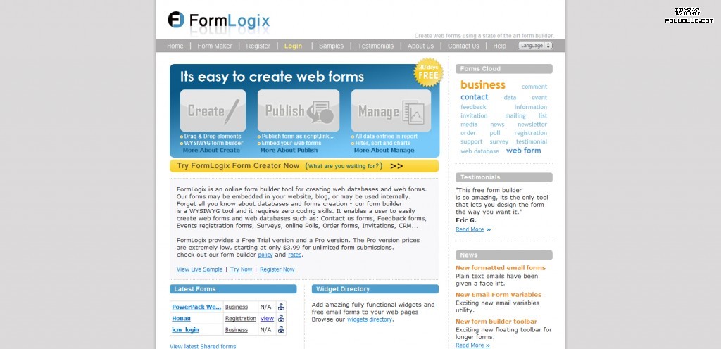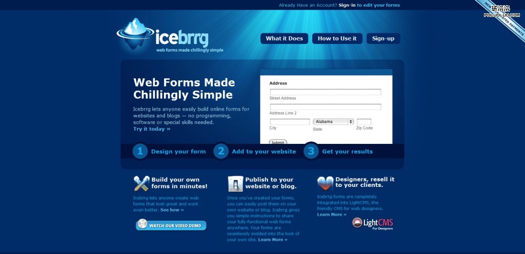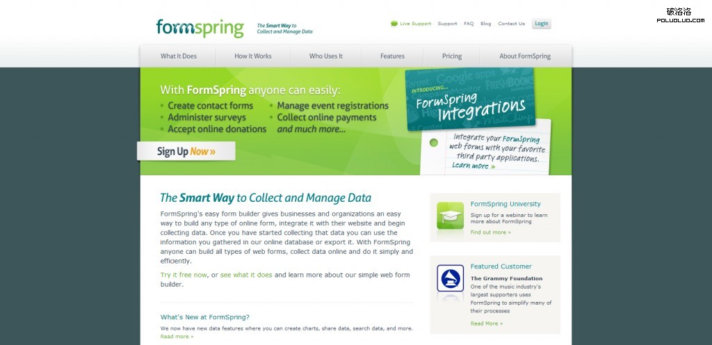 國外的在線表單應用已經很成熟,它給一般用戶用於創建各式各樣的在線表單,並可以輕輕松松地嵌入到自己的網站應用中去。在國外,類似的應用很少很少,而且很大程度上沒有得到用戶的認同,我想應該是跟國外網站應用的“更新”過快有關的,很多網站都是在年內上線年內下線,給用戶產生了不可靠的心理壓力,這些說來話長,還是讓我們欣賞下這10多個優秀的在線表單服務網站吧,設計也非常的好。