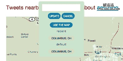 一個初次訪問Nearby Tweets的用戶也就是四處看看。所以在首頁裡只顯示“Tweets nearby xxxxx about yyyyy.”就已經足夠了。