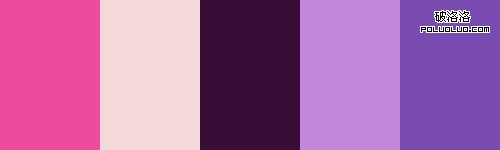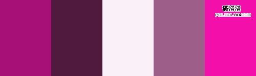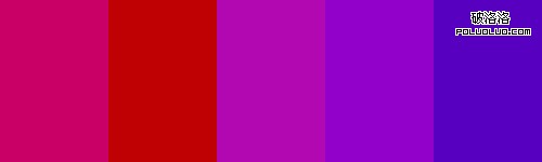 上圖可以看作類比配色方案,但我們省略了一個顏色。它深紫色和紅紫色組成。在色輪上這兩個顏色彼此相鄰,看起來效果很好,特別是當它們使用不同級別的明度和飽和度時。