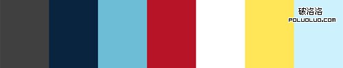 雖然這個配色方案乍眼看上去像另一個標准的灰色和紅色調色板,但是如果更仔細的研究一下,你將會發現灰色其實是藍色調。藍色和紅色構成了四階配色方案的三分之二,但在沒有黃色的時候看起來也很好,特別是在當紅色保持高純度而藍色色調淡化到幾乎變為灰色的點時。