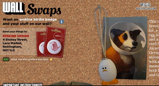 Wallswaps is a great idea procured by Erskine Design. It is a virtual cork board where companies and designers can add their work, business cards and a lot more. A beautiful idea with some exceptional navigation.