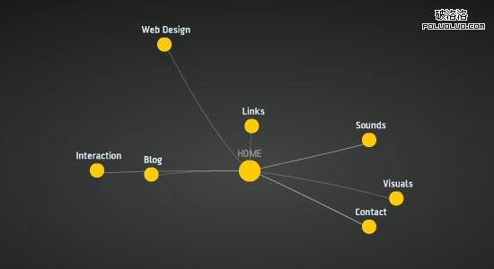 There are very few websites that try something totally different. Hello Goodlooking is one of the few. Navigation is based around a mind map design. Menu items are clicked to reveal new items and content. A stunning example of creativity using Flash.