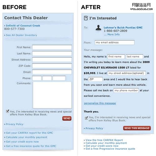 指示性的”聯系這個經銷商”,被換作第一人稱“我感興趣”。同時也避免了“經銷商”這個往往給人虛偽感覺的詞。