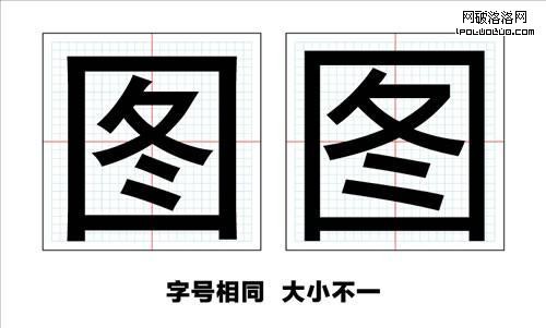 字面大小:“就是在字面框不變的情況下,可以把字設計成大小不同的字,大字稱字面大,小字稱字面小。”