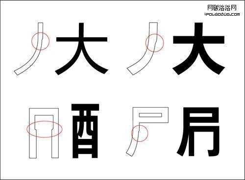 3 調整字的局部粗細來改善字的結構,提高字的品位