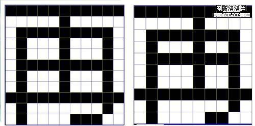 從上面兩圖比較中我們可以看出,左圖字面大,占像素多,內白均勻舒適、清晰易讀。右圖字面小,占像素少,因此,內白不勻稱、識讀效果變差。