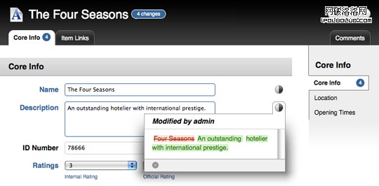 在之後的開發過程中,我們在需求列表中增加了版本比較的功能。與其創建全新的框架,不如使用在已有的框架上進行改進。我們用藍框標出已修改的表單,並使用藍色提示框標注該區域。通過這種方法我們快速部署到用戶已經熟悉的界面上。