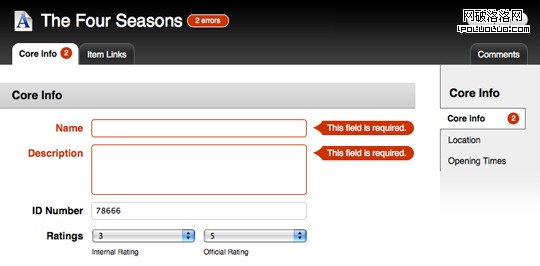 在設計CMS過程中,我們在表單驗證上花費了大量的時間。我們用紅色框出無效的區域,甚至增加紅色的提示框來說明每個填寫表單的環節有多少錯誤。