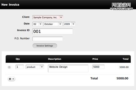 Invoice Machine 的界面十分的簡約。示例顯示它非常節約擴展部分並注重細節。