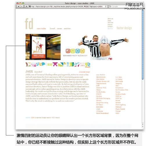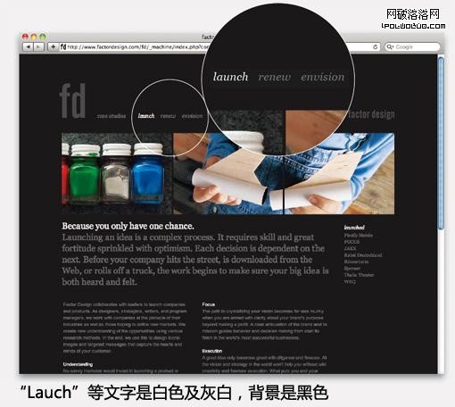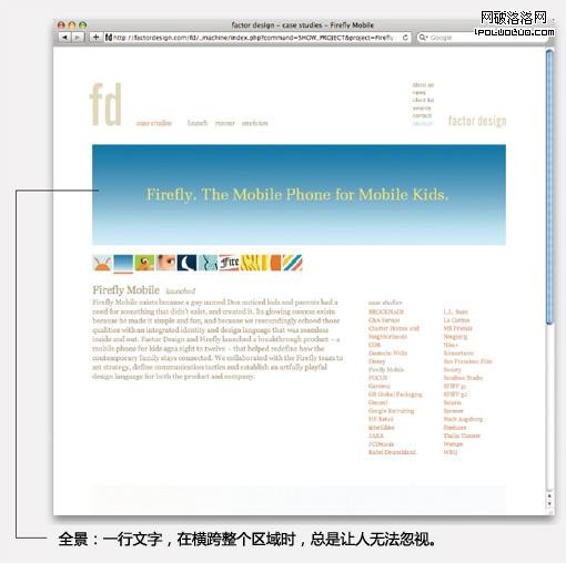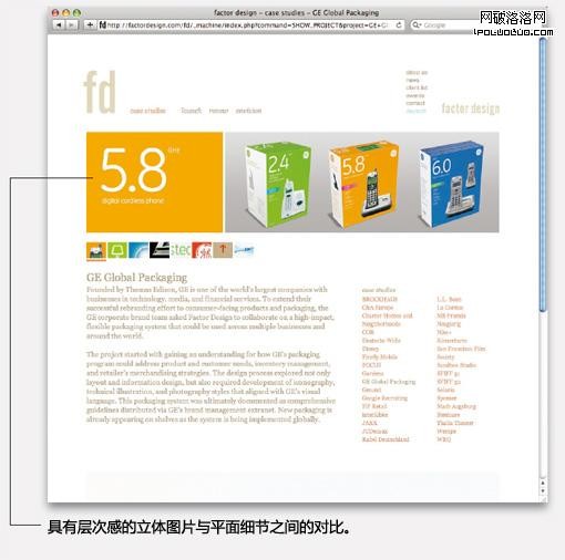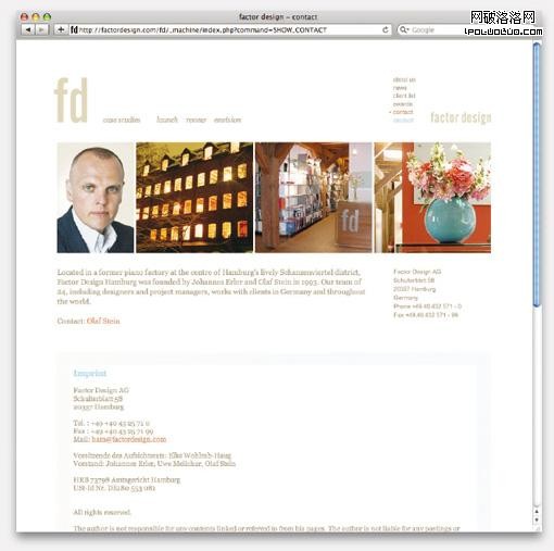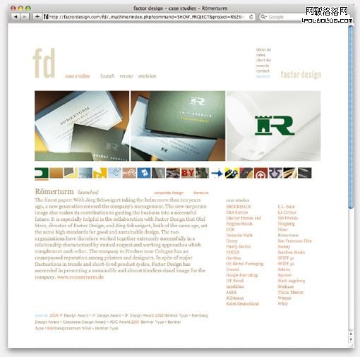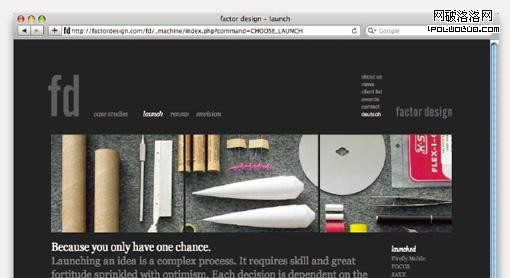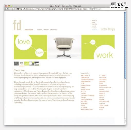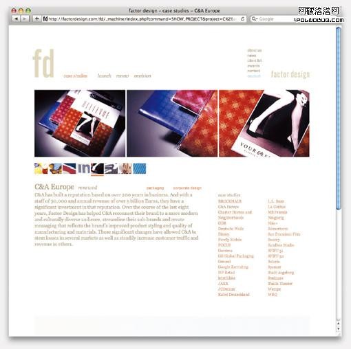 Factor Design網站令人一見難忘,其版面結合了作品展示及手冊設計的特點形成漂亮的效果。白色的開闊區域,高度簡潔及最小化的構成,柔和的顏色搭配,通過一些隱藏的表格整潔清晰地呈現出來。