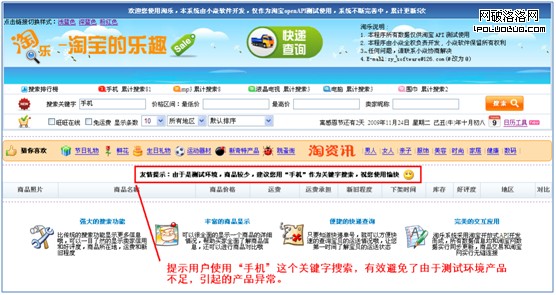 比如:淘樂通過提供”友情提示”引導用戶進行給定關鍵字搜索,有效避免由於測試數據缺失導致的產品異常。