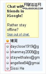 下圖為igoogle聯系人當前不在線時場景,使用了灰色icon來進行區分,這類設計在即時通信產品中較為普遍。