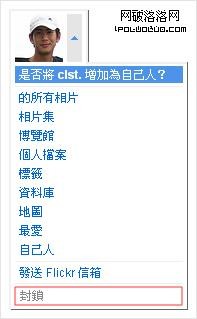 下圖中Flickr的“封鎖”操作點擊後,會阻止該好友與你進行一切信息交換與互動,該操作的“灰色”處理恰好可以輔助表達出這層隱含的意思。