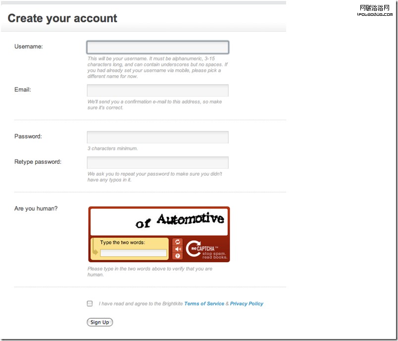 圖一:Brightkite上的注冊表單(2008年4月)