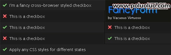 FancyForm 是一個非常強大的 JavaScript 庫,可以作為 checkbox 和 radio button 的替代品,能生成非常漂亮的 checkbox 和 radio button,並支持幾乎所有浏覽器,該 JavaScript 庫需要 MooTools JavaScript 框架的支持。