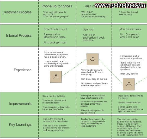 (3)體驗歷程映射(Customer Journey Mapping):源自服務設計業(Service Design)的一種方法,通過追蹤、描繪用戶使用某項服務時所有環節的體驗(包括遭遇及情感反映),以發掘痛點、轉化為改進機會或體驗創新點。典型的CJM圖如圖4:
