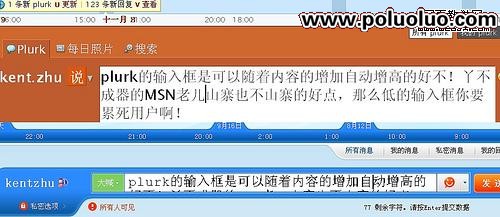 後來MSN很聰明的選定了這個微博產品進行山寨,不過很可惜的是沒有山寨到其精神,MSN聚酷的輸入框高度是固定死的,隨著內容的增加框內的文本根本無法再閱讀。