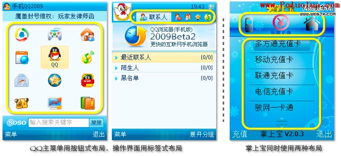 手機QQ和掌上寶混合使用了兩種布局方式