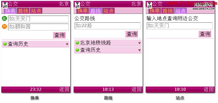 第二,快速切換標簽。如果三個功能集中在一個頁面,若用戶想查公交站點,則必須“路過”排在前面的換乘、路線兩個功能模塊,至少需要按6-9個向下鍵才能到達公交站點的輸入框。采用標簽式布局,最少只需移動兩次右鍵即可。