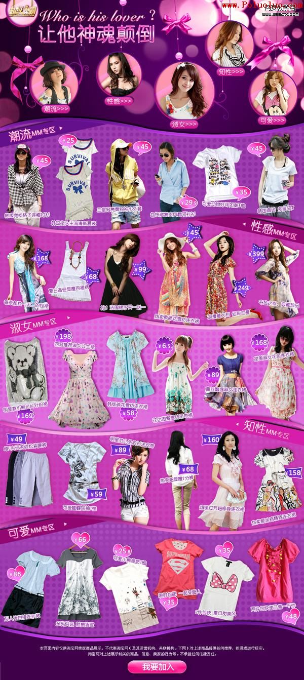 要 求:100%及粉嫩小女人都是在線購物非常吸引眼球,容易引起點擊的標題;主題訴求明確,與產品貼合度高。整個活動頁面呈現小女人衣櫃的感覺。