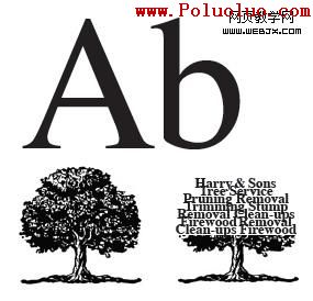 Gargoyle 字體具有一種人文氣息及手寫體的風格,但它同時具有一種標准的比例及舊體的風格,字體細節豐富,而且不同字母的各個細節變化無規律,線條粗細變化並不明顯,它樸實無華的線條及圓弧轉角的細節給人一種溫暖、變化及生命力的感覺,而這一切,正象樹木圖片所呈現的風格。這就是我們要選擇的字體。