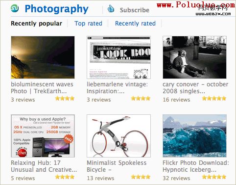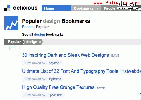 Delicious使用細小的1px灰色線來分隔其用戶的熱門書簽。