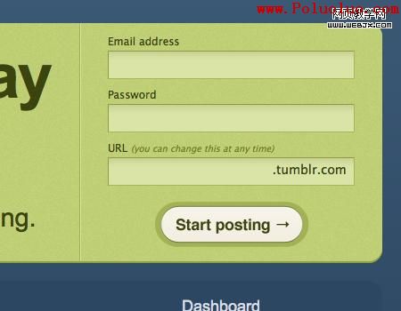 最簡單的注冊表單的例子是Tumblr。整個注冊只需要填寫三項:email,密碼和用戶名,就這麼簡單。