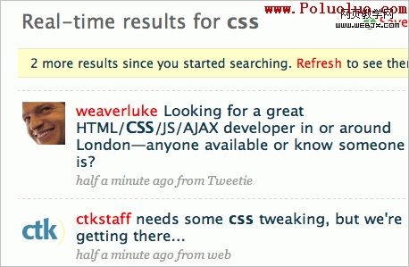Twitter search用高亮的方式即時顯示用戶的最新更新。這也許是將來搜索和新聞流的樣子。