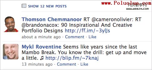 Facebook在頁面的頂部顯示更新,這些更新用戶可以按需顯示——運用ajax,當然無需刷新。