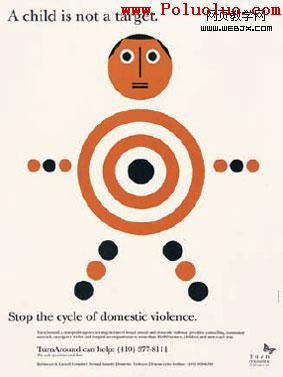 圖 2 在上面兩張保護兒童的宣傳海報中,重復的圓圈既是構圖的主要元素,也是一個主題的元素——兩張都是由有趣的視覺元素及保護兒童的文字組成。