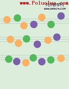 圖 1 上圖的圓圈是作為重復的元素,但其中每一個圓又有位置及顏色上的變化。