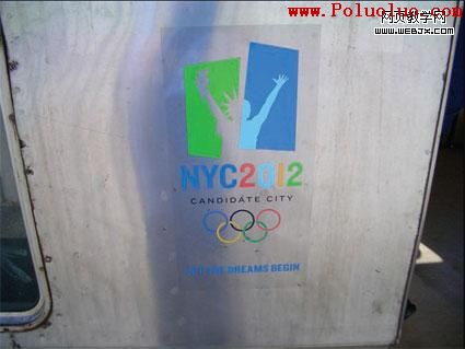 圖 9 為了使人們支持紐約市申請 2012 年奧運會,有關部門采用了上圖這幅作品作為申奧標志——一個結合了運動員及自由神像組合的標志。該標志在紐約市裡隨處可見,甚至在地鐵車廂裡也可見到它的身影。