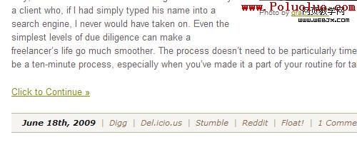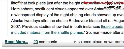目前網站通常使用的方法,是使用簡單的文字鏈接來顯示"查看全文"。通常設置為下劃線、粗體、顏色突出,或者加一個“>”標記。中心目的就是保證它於普通鏈接明顯的區別開,這是很多設計師容易忽視的地方。